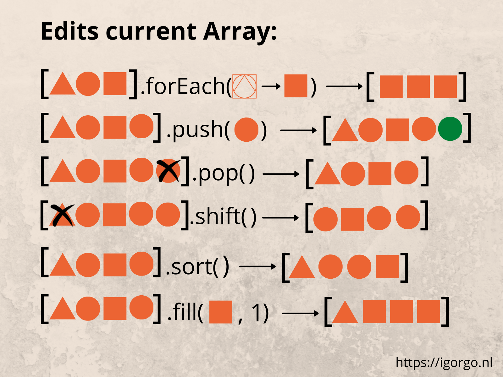 이러한 방법을 사용할 때 기억해야 할 핵심은 이전 기능과 마찬가지로 새 배열을 반환하지 않는다는 것입니다. 하지만 초기 배열을 변형시킵니다.